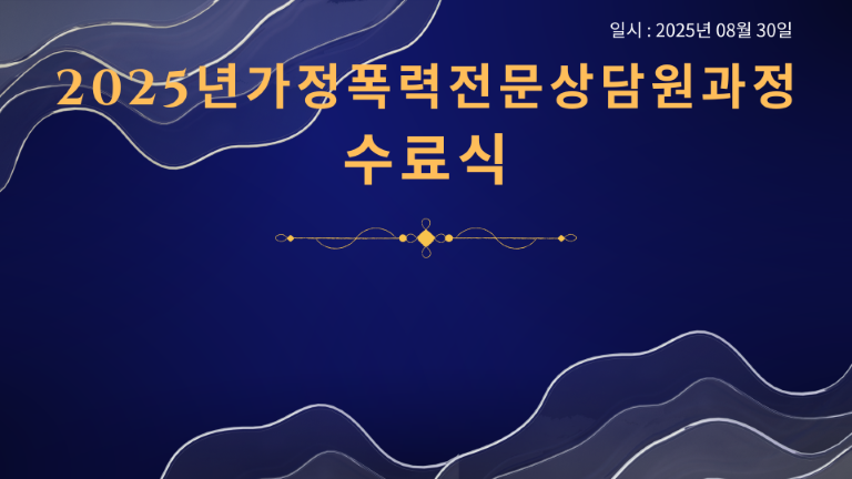 2025년 8월 30일 가정폭력전문상담원과정 수료식 페이지 정보 작성자 최고관리자 댓글 0건 조회 634회 작성일 25-09-03 09:49 목록 본문 이전글2025년 9월 청소년문화의집 청소년 이성교제 및 피임 교육실시 25.09.17 다음글2025년 9월 20일 아동청소년들의 “심미적 감수성 향상“을 위한 자연 미술놀이 프로그램 25.08.22 댓글 0 댓글목록 등록된 댓글이 없습니다. 목록